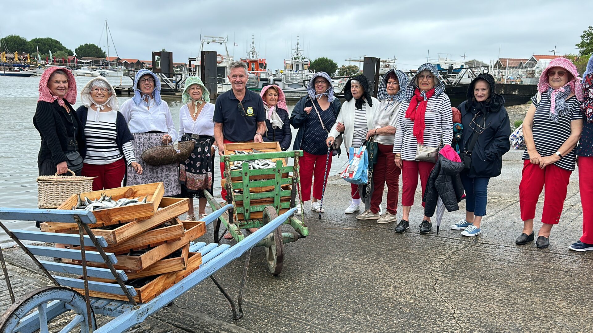 Sur le port de Larros ce samedi : l’association « Barbots de tout temps » faisait revivre le temps des retours de pêche à la sardine… Pantalon rouge, benaises et voilier sardinier : tout était réuni pour célébrer l’époque où la sardine frayait encore dans le Bassin d’Arcachon.