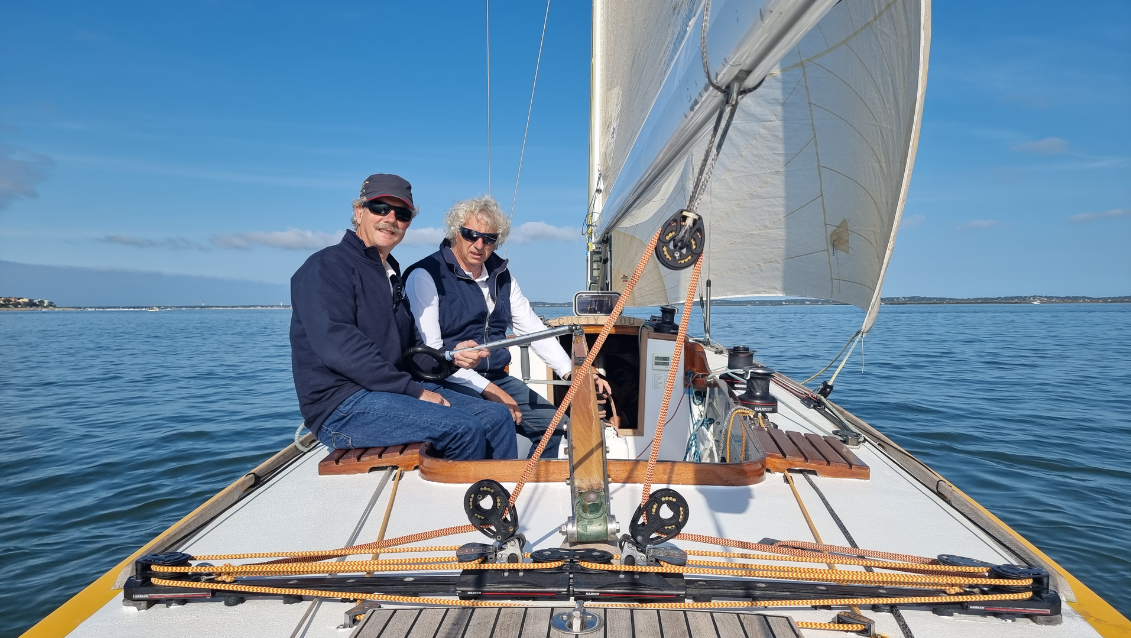 C’est un voilier emblématique du Bassin d’Arcachon : le Cutty-Tou, de son jaune éclatant, régate avec les frères Minos depuis 1974. Le bateau des années 30 est une ancienne série olympique qui a valu à Alain et Gilles le titre de champions de monde.