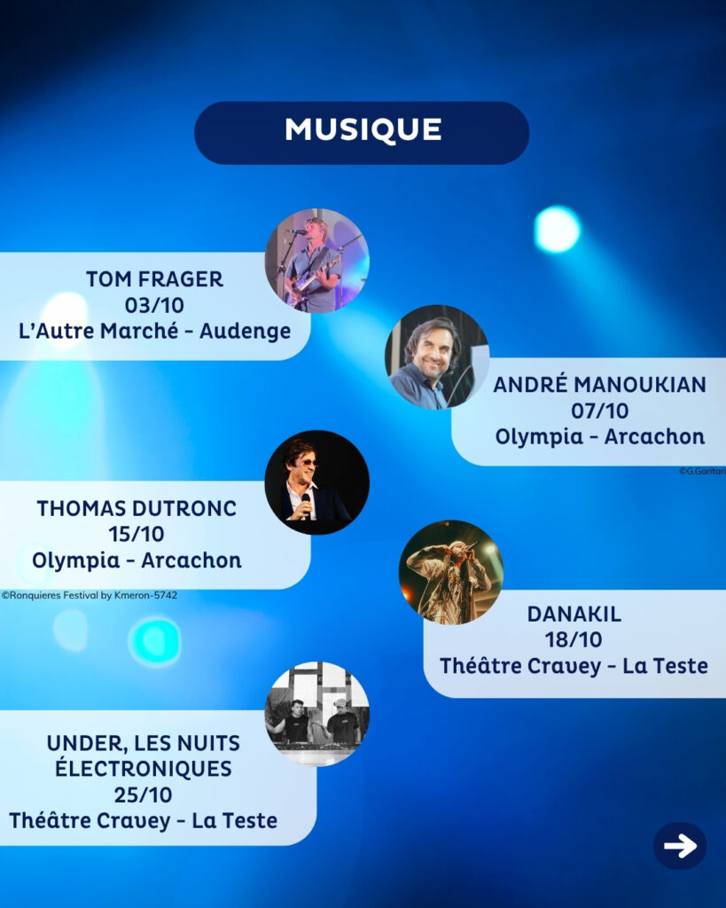 📍 Lieu : Théâtre Cravey – La Teste-de-Buch 🎟️ Infos et billetterie : accessibles via le QR code présent sur l’affiche.