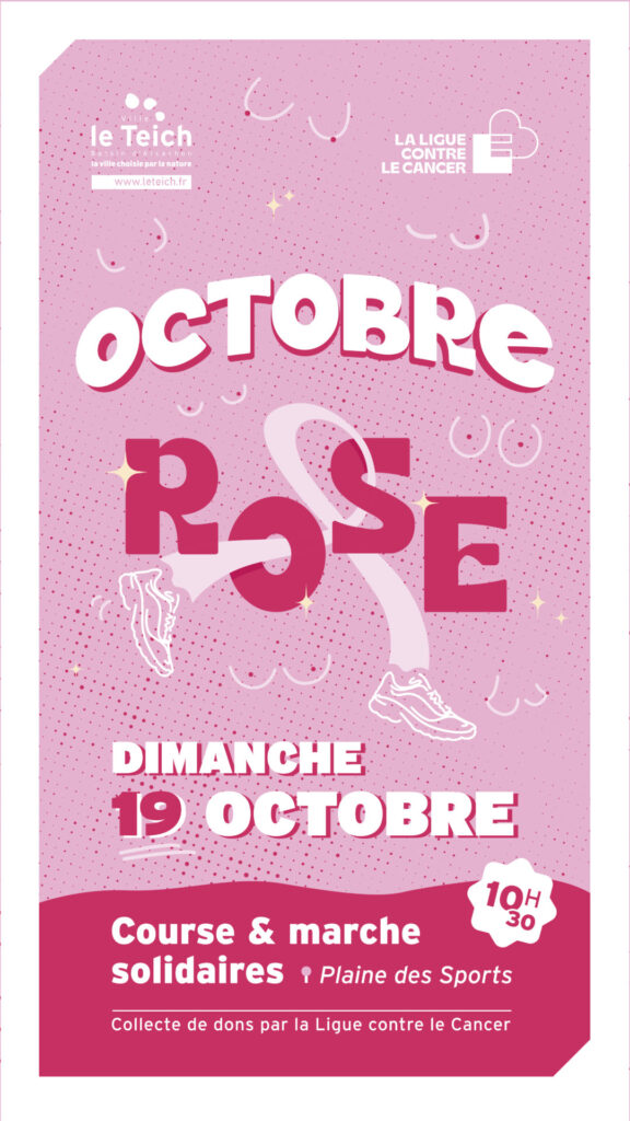 La Ville du Teich s’associe à la Ligue Contre le Cancer pour organiser une marche et course solidaires de 5km le dimanche 19 octobre à 10h30, au départ de la Plaine des Sports.