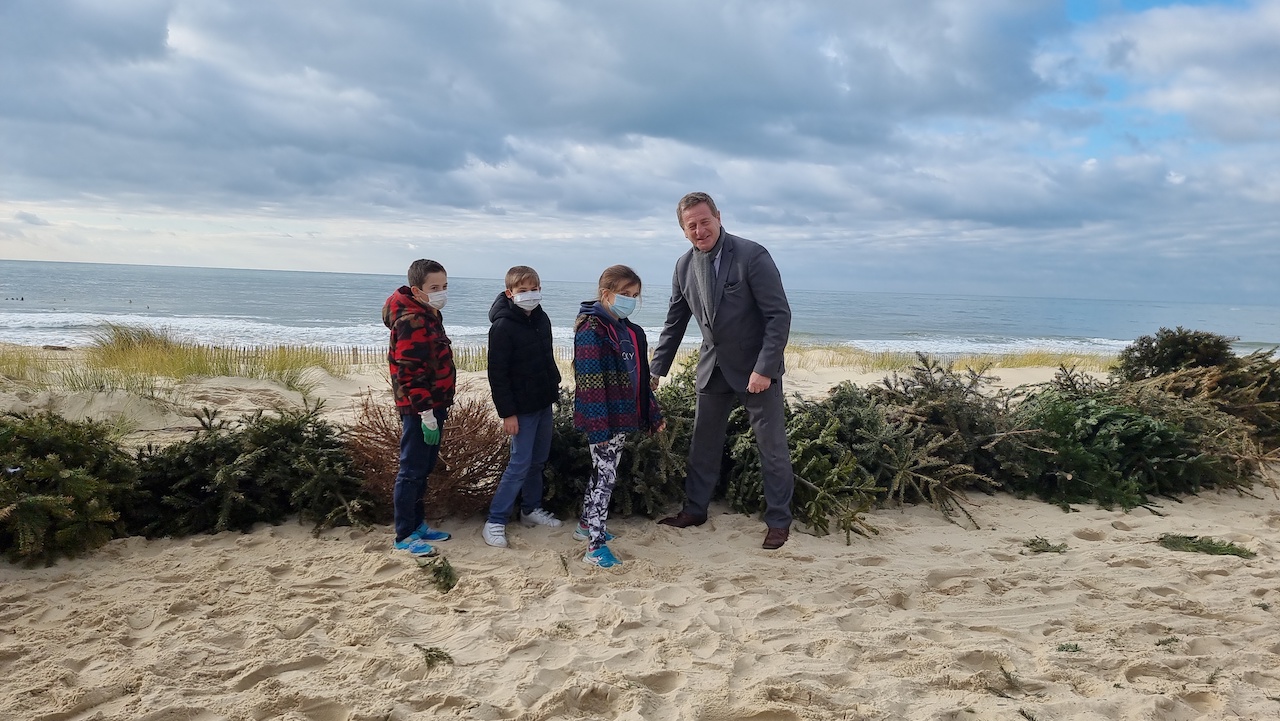 Durant deux jours, du 18 au 20 Janvier, l’ONF, le Conseil Municipal des Jeunes et 8 classes de CM1 et CM2 posent les sapins sur la dune.