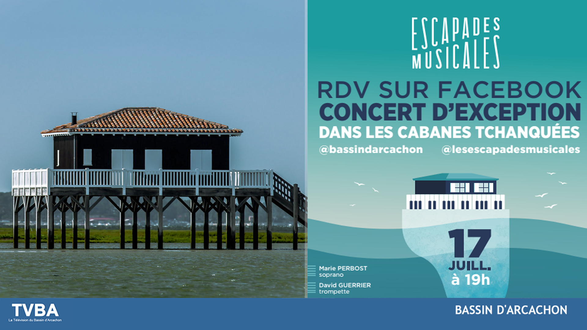 Vendredi soir à 19h, les Escapades Musicales et le Bassin d’Arcachon présentent un concert d’exception aux Cabanes Tchanquées. Diffusé sur les pages Facebook « bassindarcachon » et « lesescapadesmusicales« , TVBA reliera et partagera ce concert en direct sur ses réseaux sociaux. Un rendez-vous à ne pas manquer !