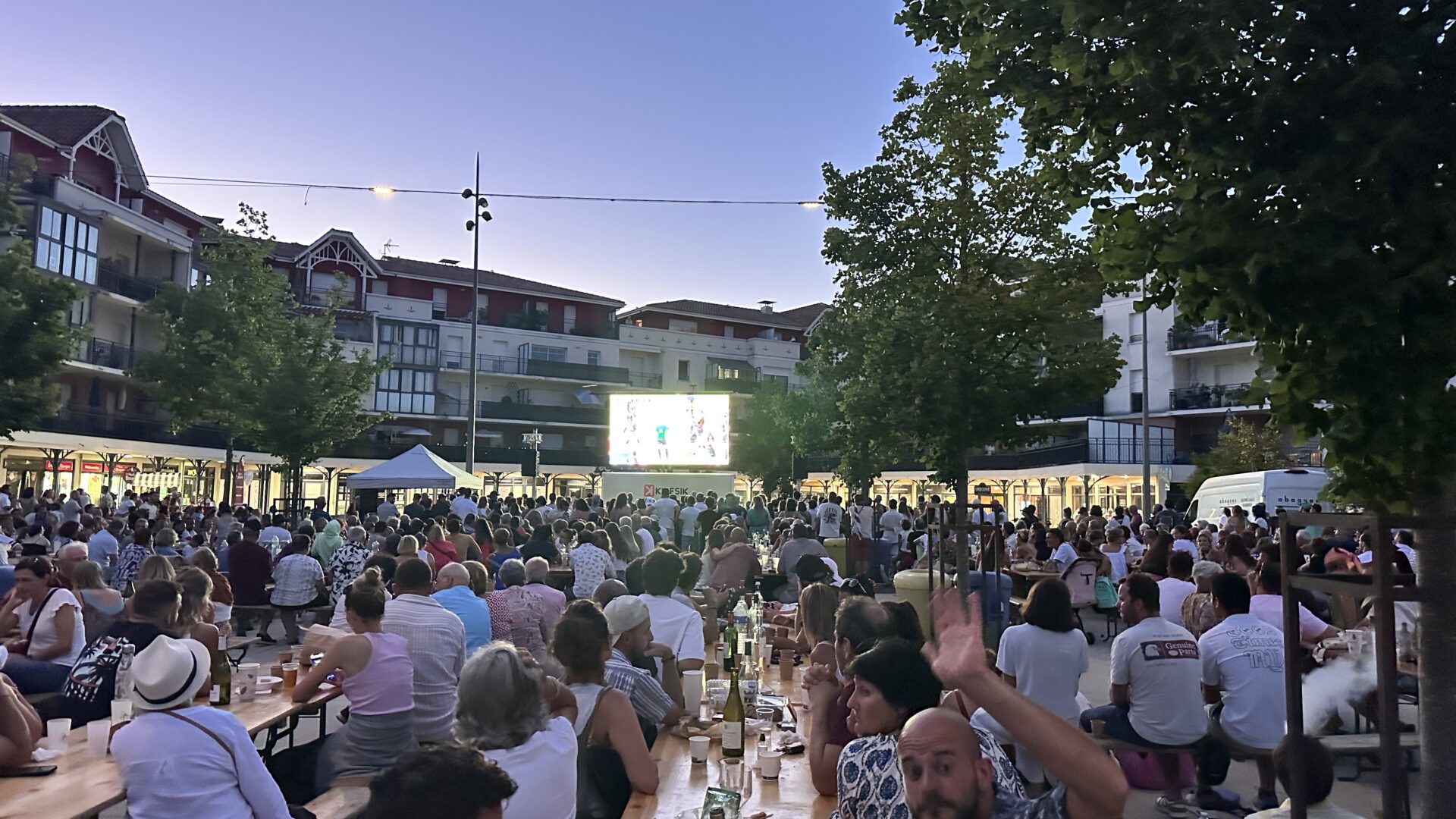 Un écran géant était l’installé pour l’occasion. La banda était sur place pour mettre l’ambiance et les commerçants de la halle avaient préparé des planches, tapas et boissons pour régaler tout le monde.