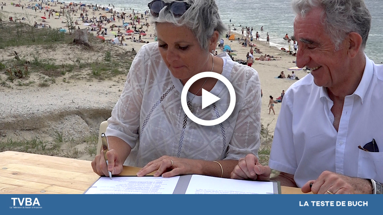 Ce mercredi 14 août, devant le poste de secours de la plage du petit Nice, le maire de La Teste, Jean-Jacques Eroles, et la députée Sophie Panonacle ont signé une charte.