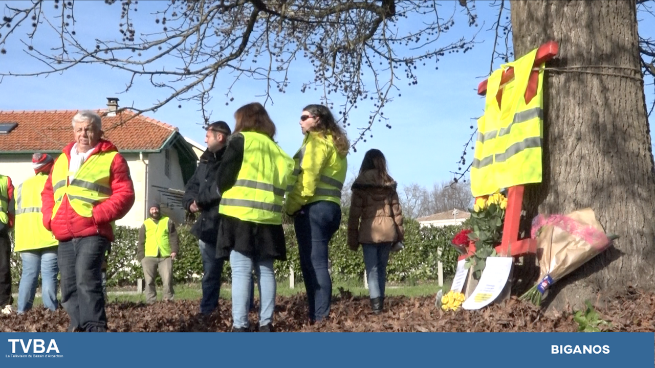 Hier après-midi, les membres de l’association des Gilets jaunes du Bassin sud et des Hautes Landes ont organisé un rassemblement près de l’étang de Biganos en hommage aux 11 personnes décédées durant les manifestations.