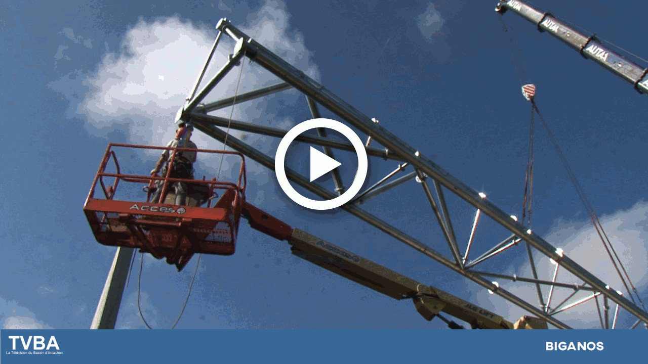C’est une opération d’ampleur qui a eu lieu ce lundi matin sur le chantier de la salle des sports de Biganos. Le grutage et la pose d’une poutre métallique de 36 mètres de long et de 13 tonnes. L’opération a mobilisé des ouvriers spécialisés pendant plus trois heures. Une couverture textile sera ensuite posée sur cet assemblage pour permettre à l’aire de pala d’être utilisée quelles que soient les conditions météorologiques.